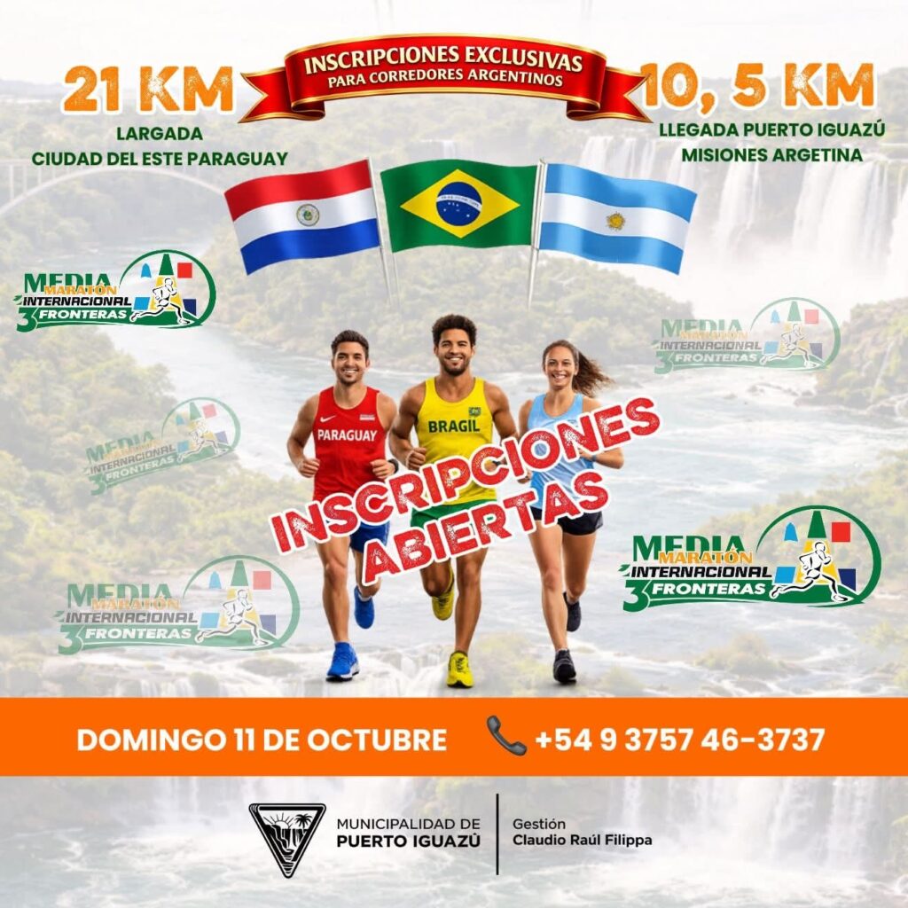 Puerto Iguazú se prepara para uno de los eventos deportivos más convocantes de la región: la Media Maratón Internacional de las 3 Fronteras, una propuesta que combina running, turismo y cultura en un circuito único que une Argentina, Brasil y Paraguay.
